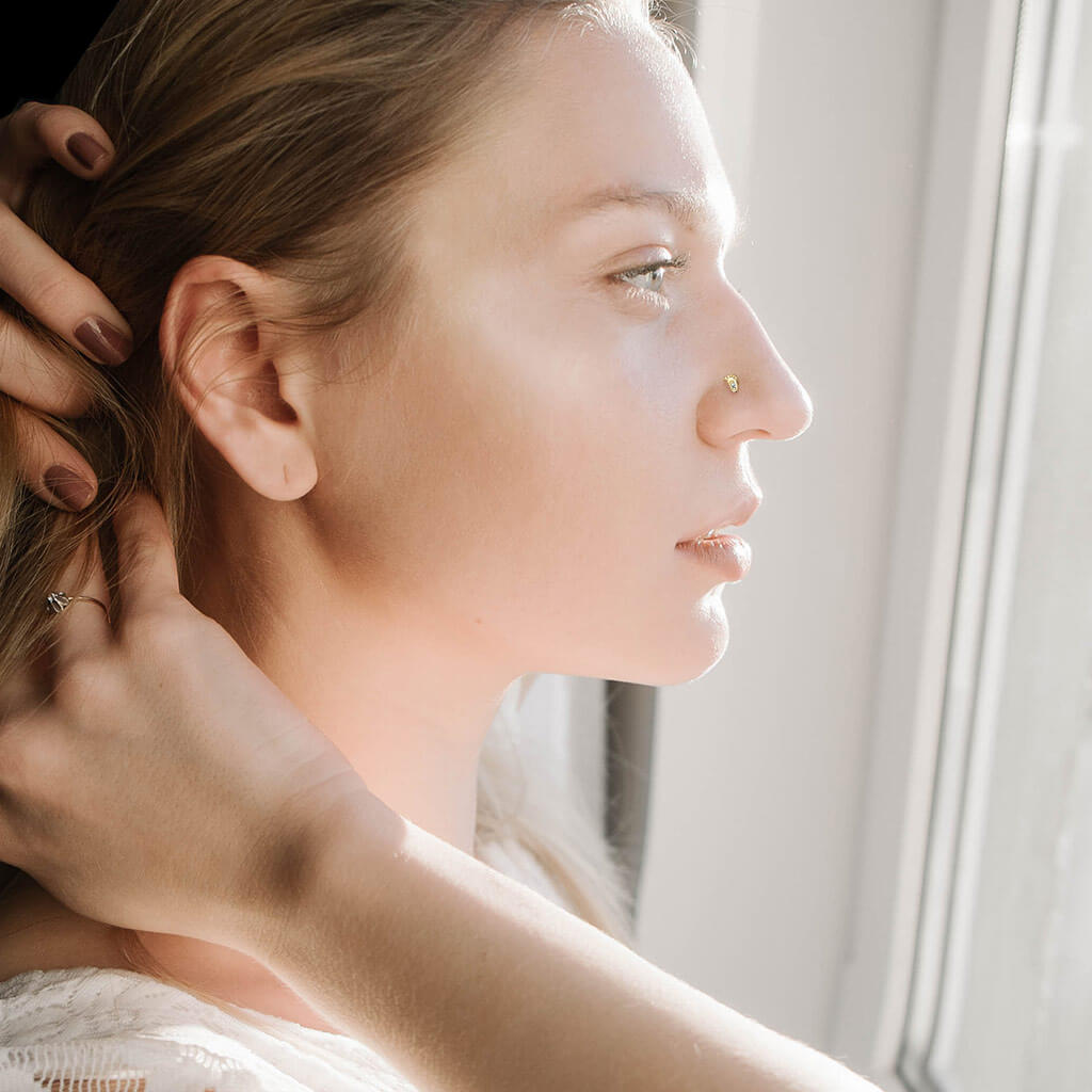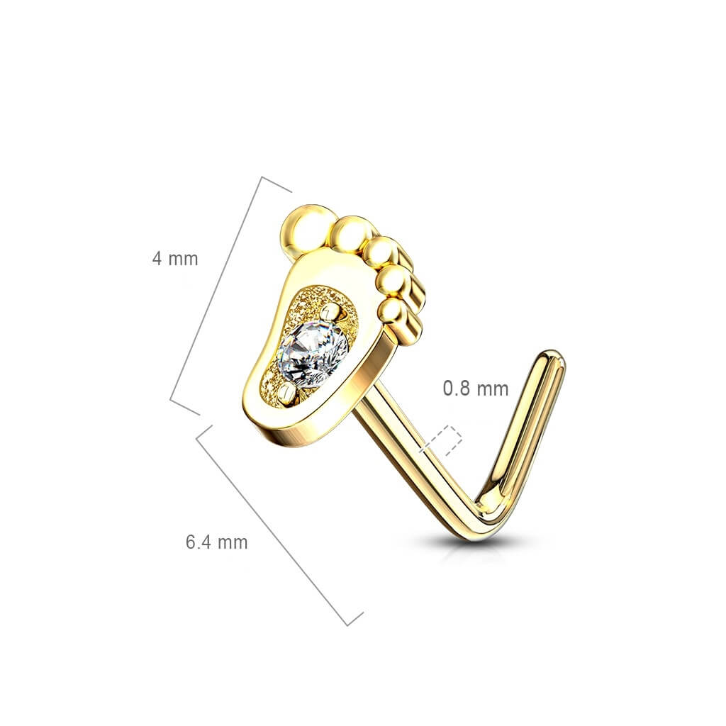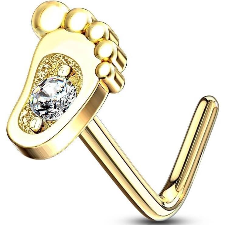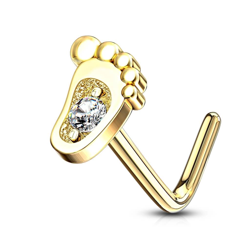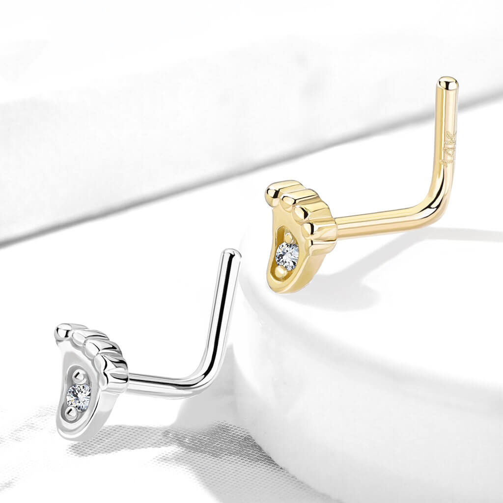 14 Karat Gold Nasenstecker L-Form Fuß Zirkonia Gelbgold Weißgold