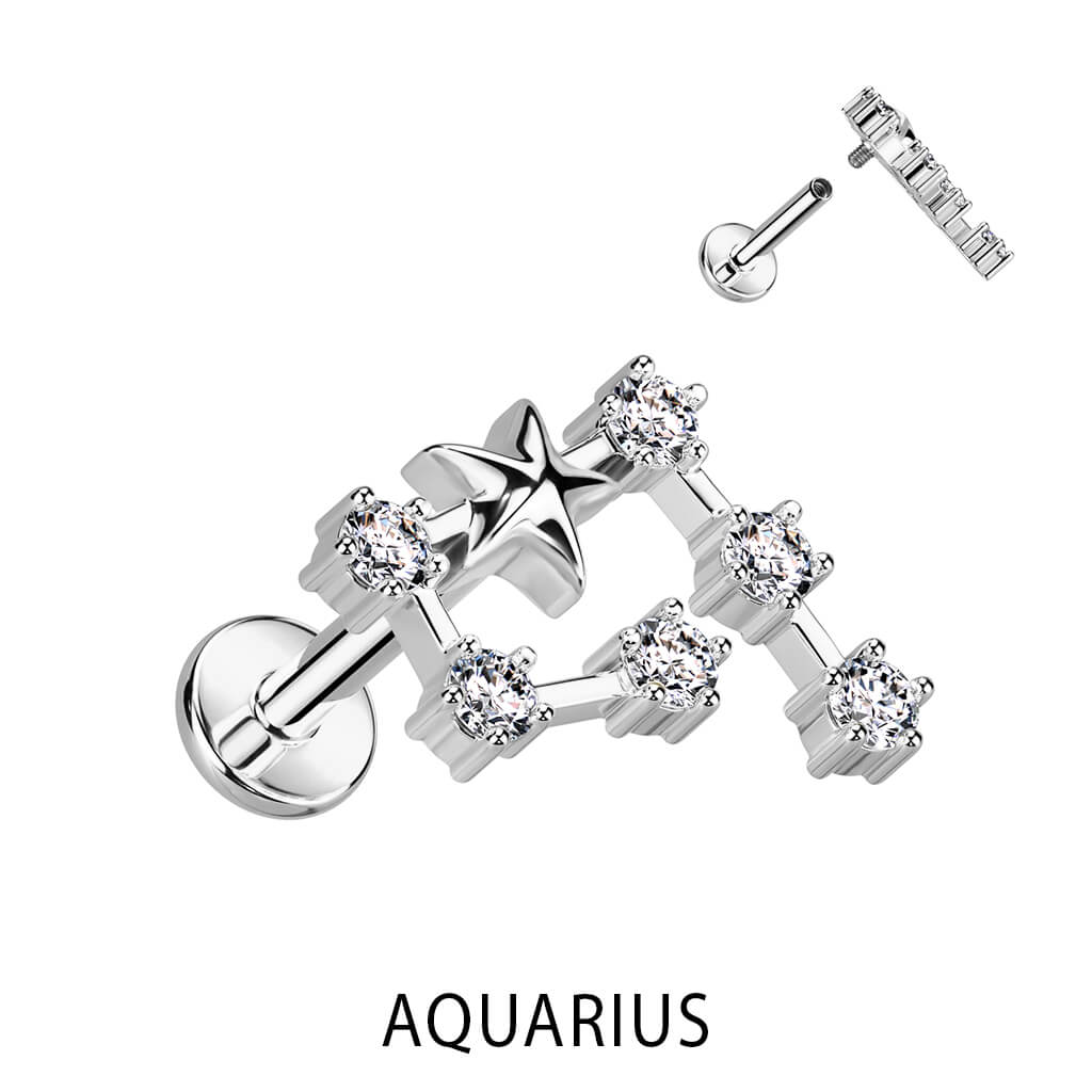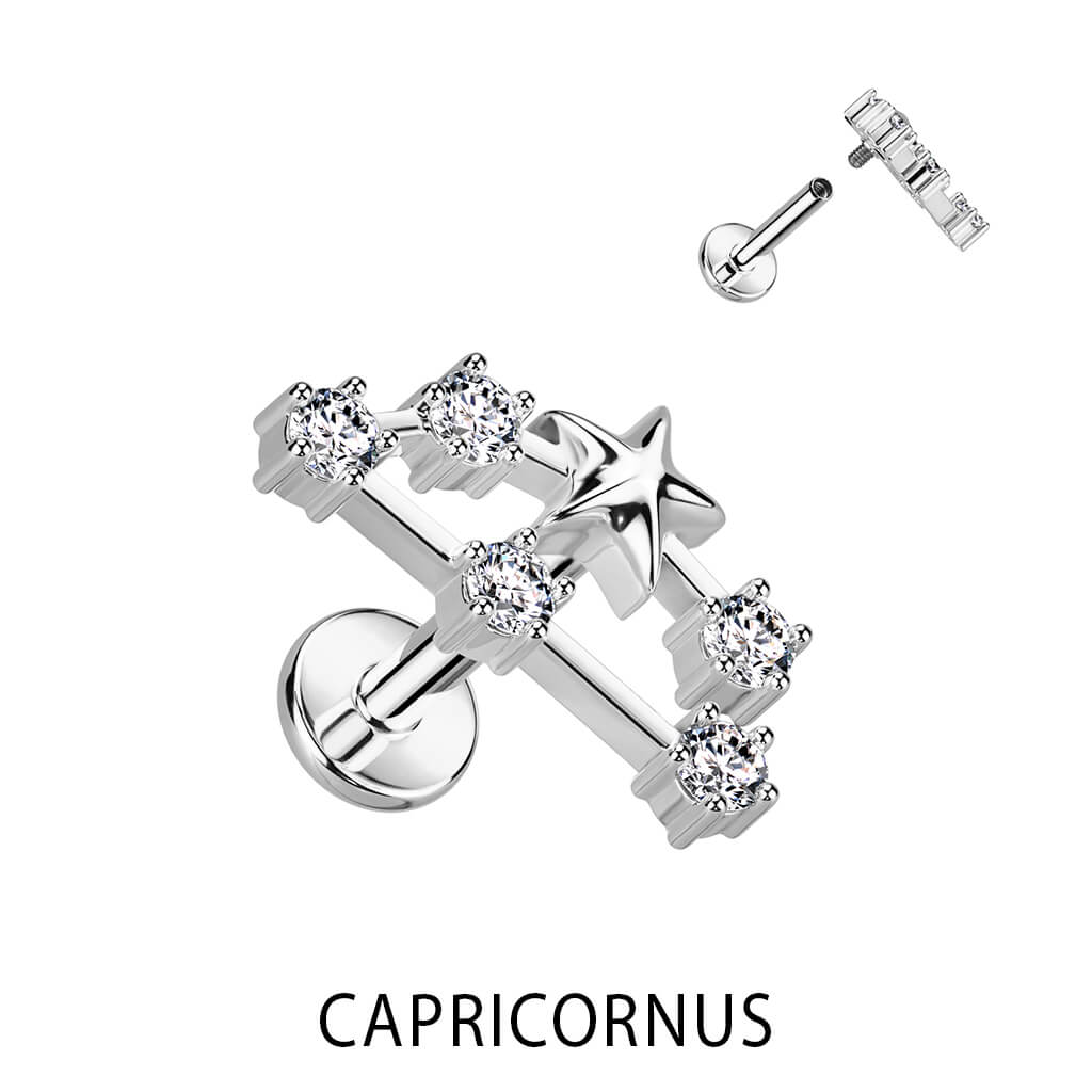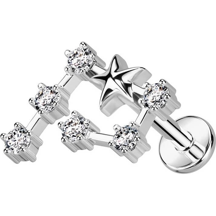Labret Sternzeichen Zirkonia Silber Innengewinde