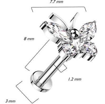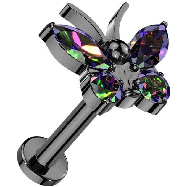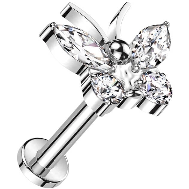 Titan Labret Schmetterling Zirkonia Innengewinde