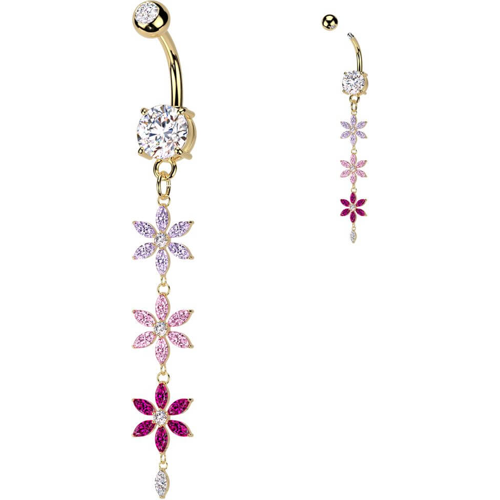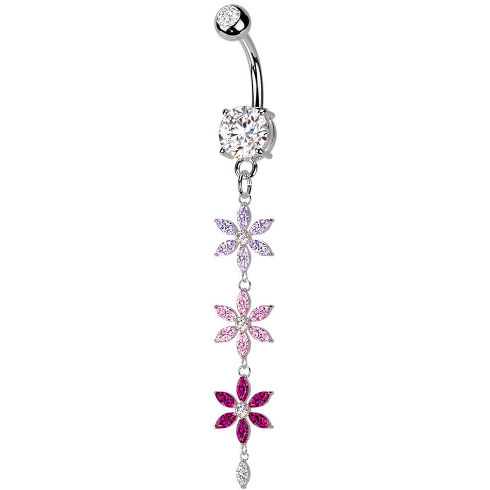 Belly Button Piercing multicolored triple zirconia flower dangle