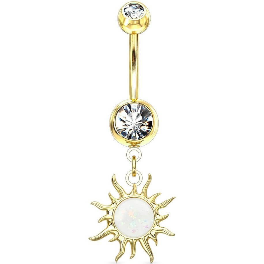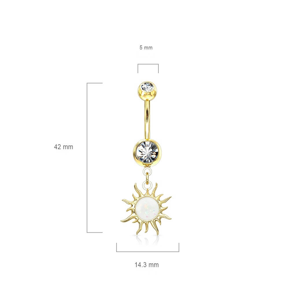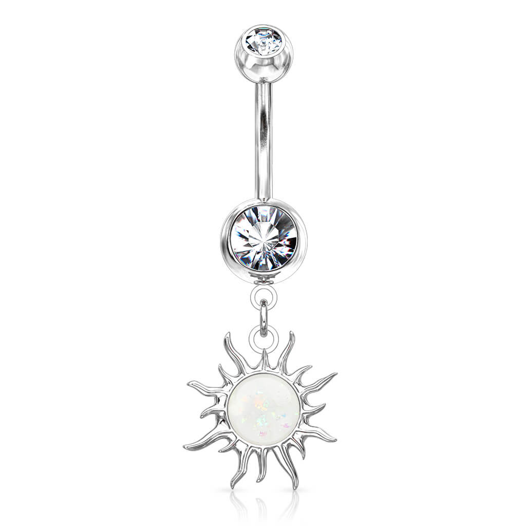 Piercing ombligo Sol Tribal Colgante Ópalo Circonita
