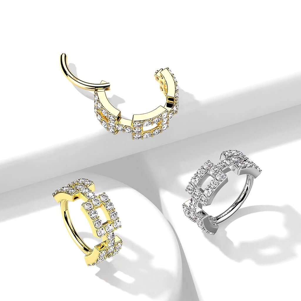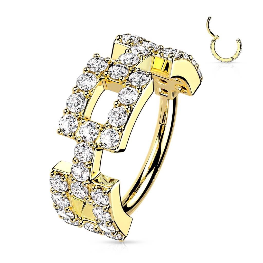 Oro 14kt Anillo Engaste pavé Circonita Clicker