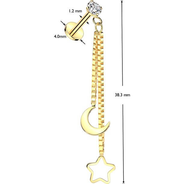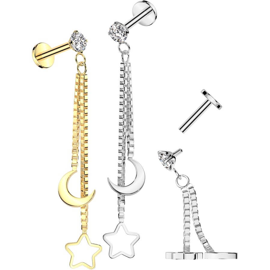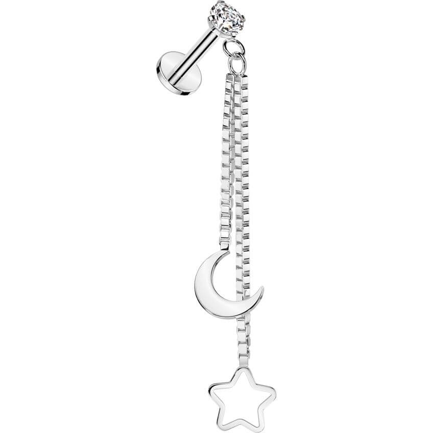luna creciente estrella hueca Rosca interna Labret