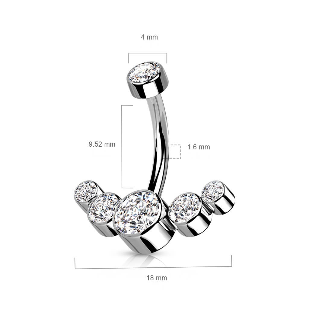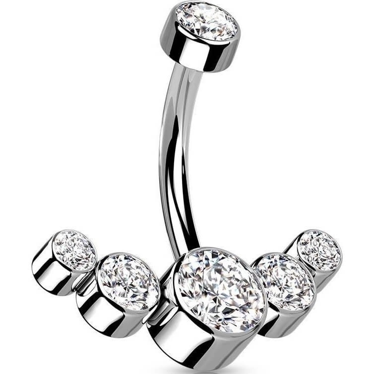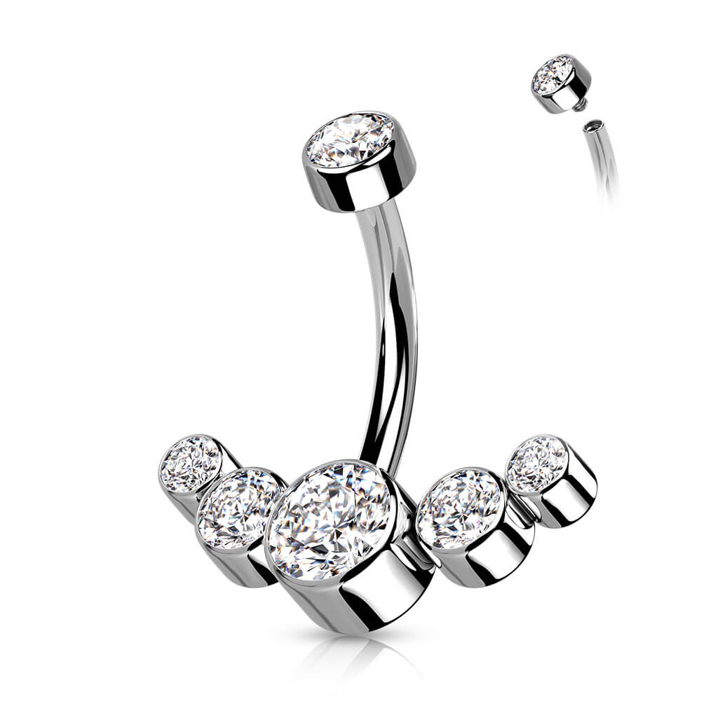 Titanio Piercing ombligo 5 Circonita Plata Rosca interna
