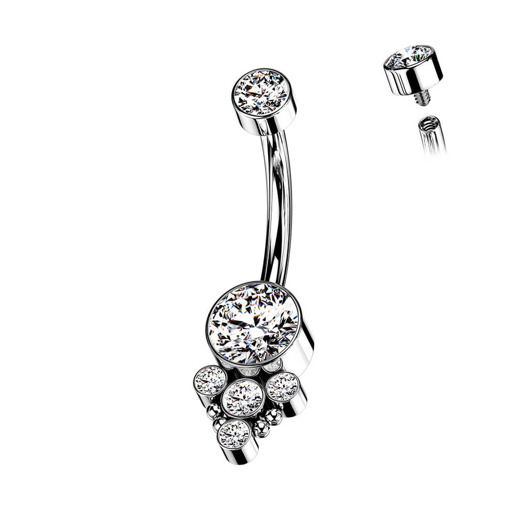 Titanio Piercing ombligo Circonita Ópalo Plata Rosca interna