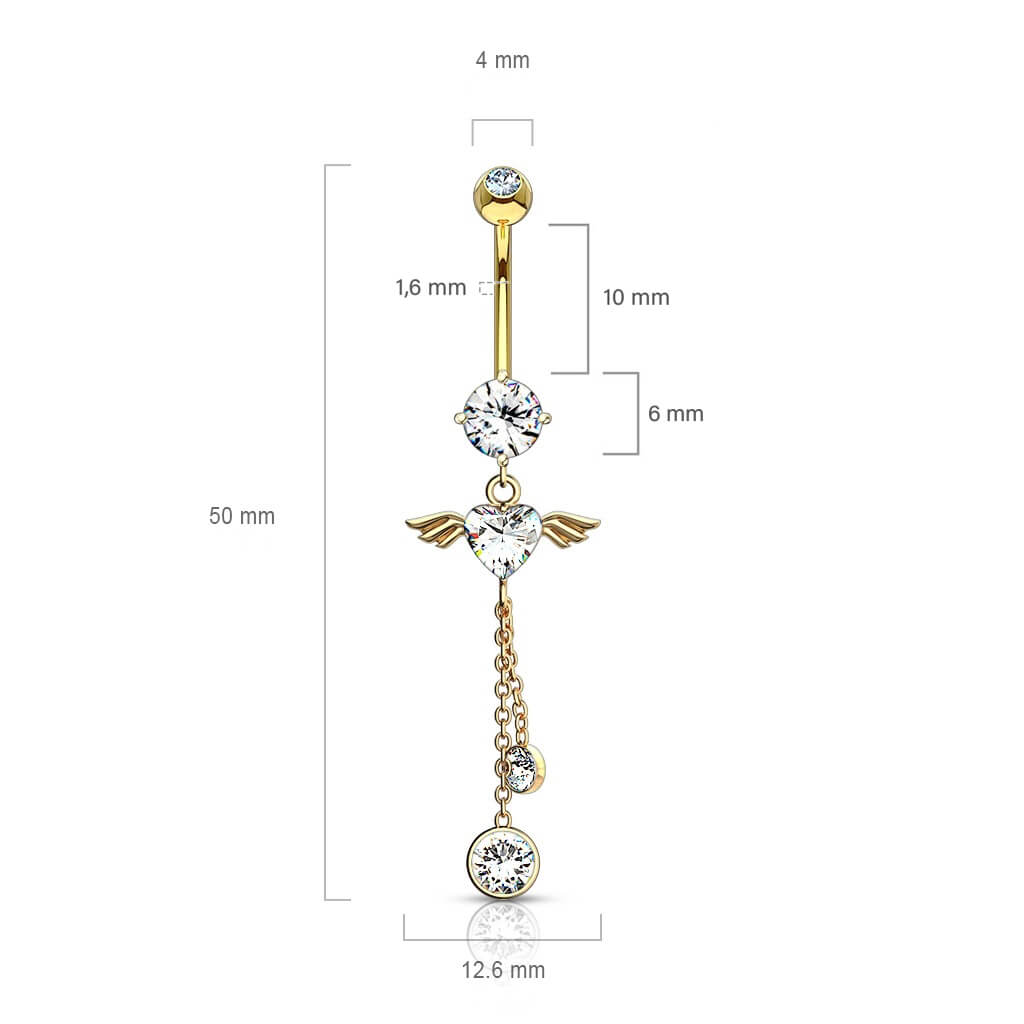 Or 14kt Piercing Nombril Pendentif Ailes d´Ange Zircone