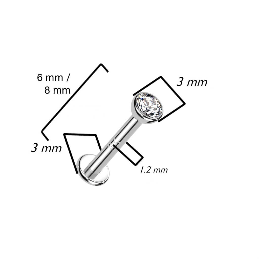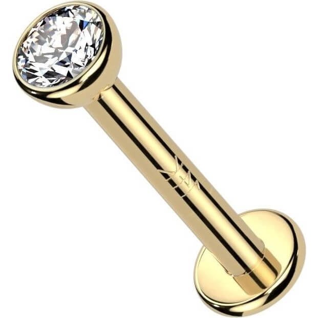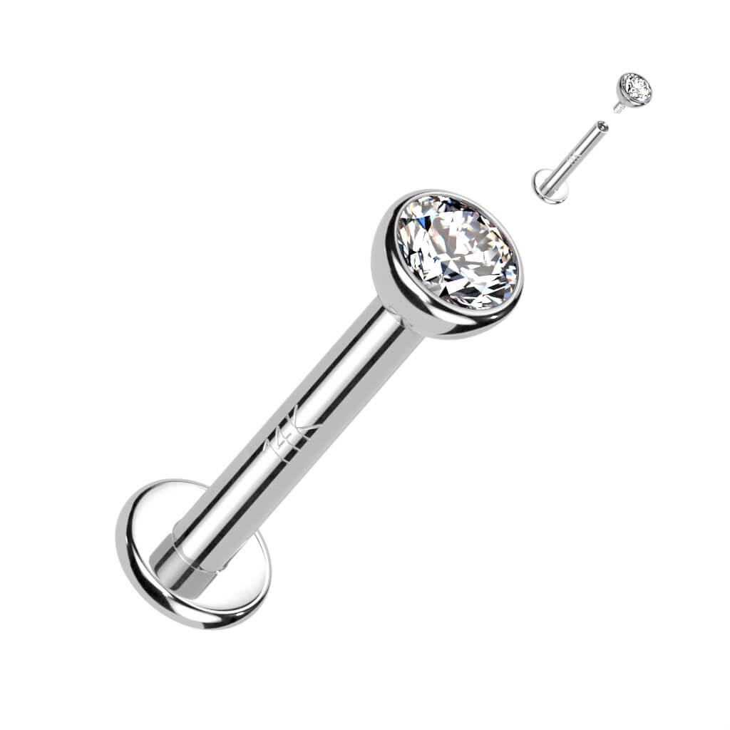 Or 14kt Labret Zircone Ronde Et Plate Filetage Interne
