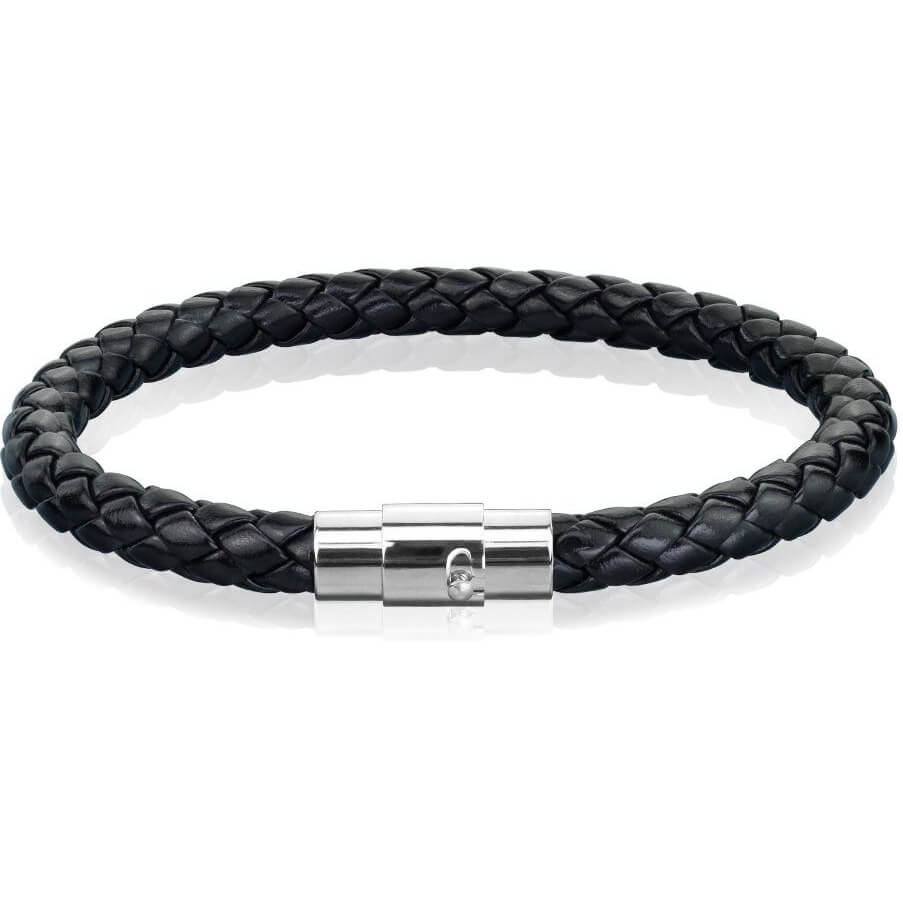 Bracelet Tressé Noir Fermoir Argent Aimant