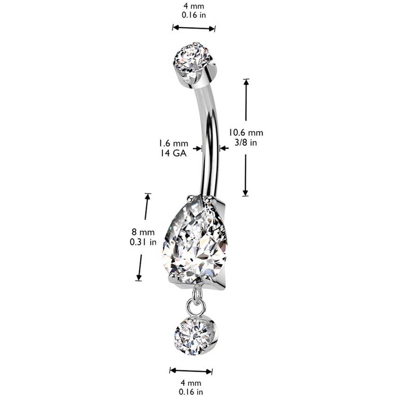 Titanium Belly Button Piercing zirconia dangle Internally Threaded