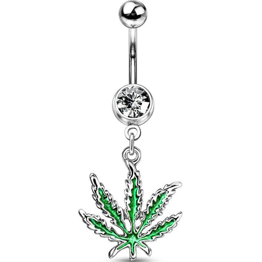 Piercing Ombelico Pendente a Foglia di canapa zirconi e argento