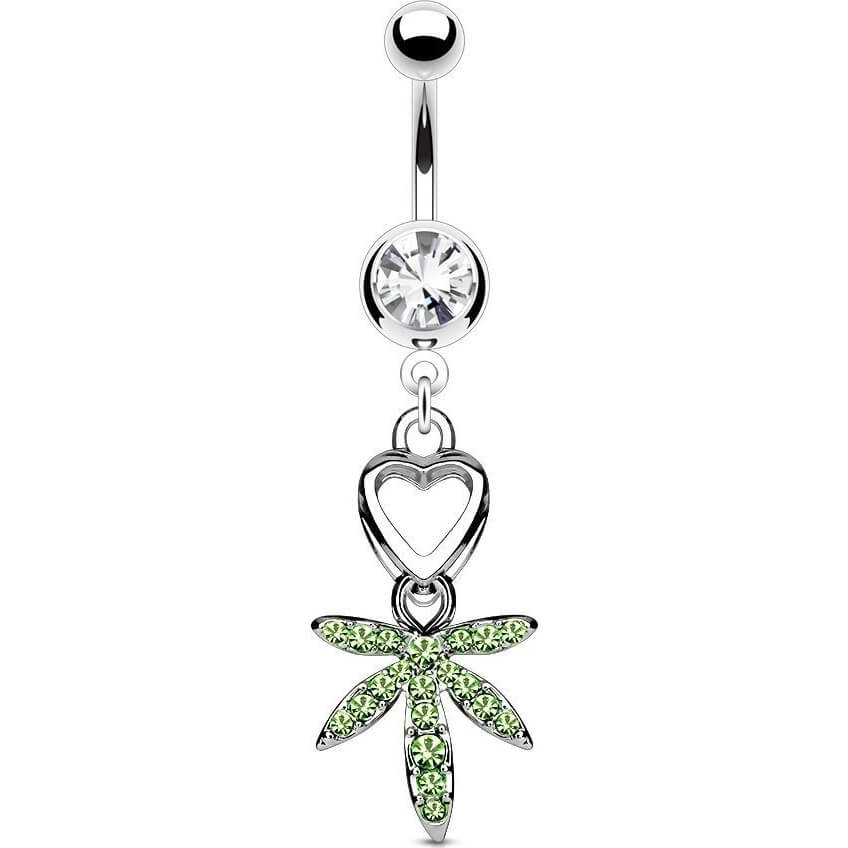 Piercing Ombelico Pendente a foglia di canapa colorata in acrilico e argento