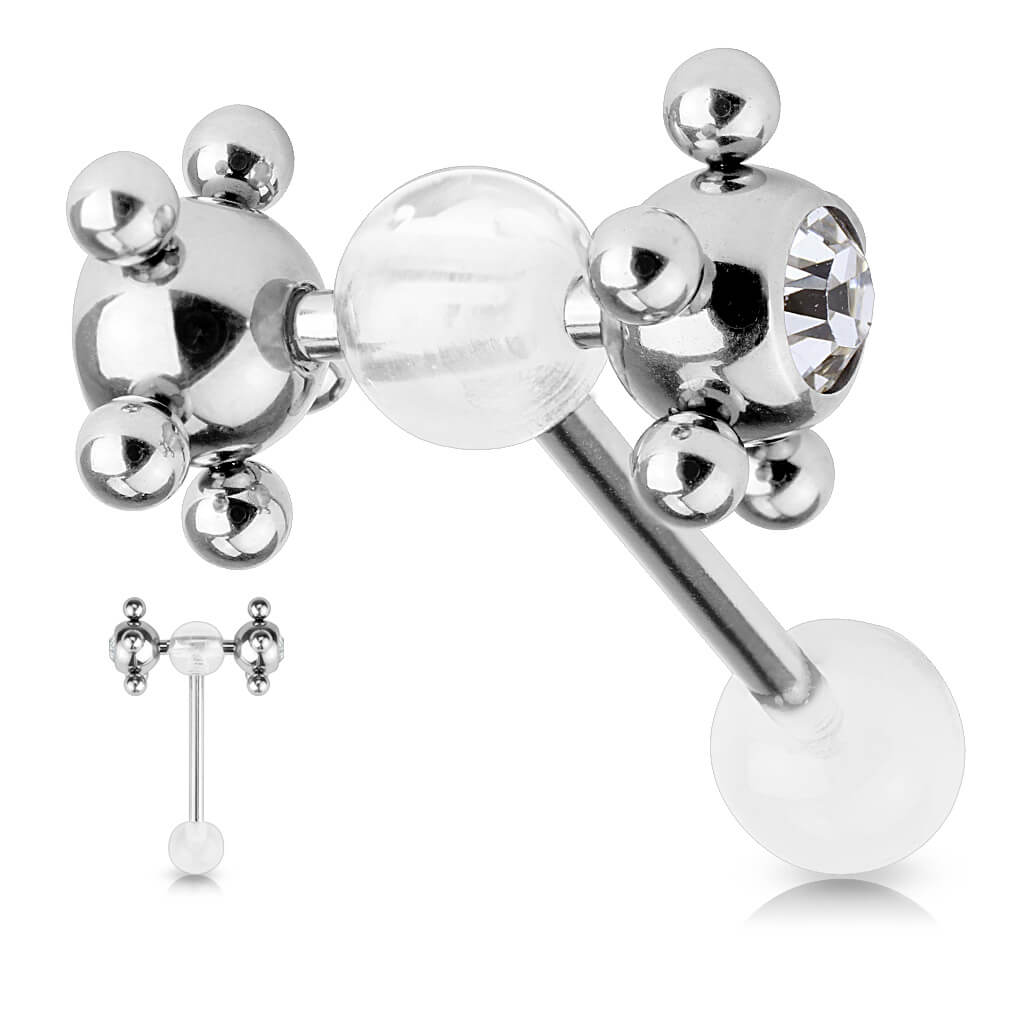 Barbell Lingua Sfera in acrilico con multisfere in acciaio