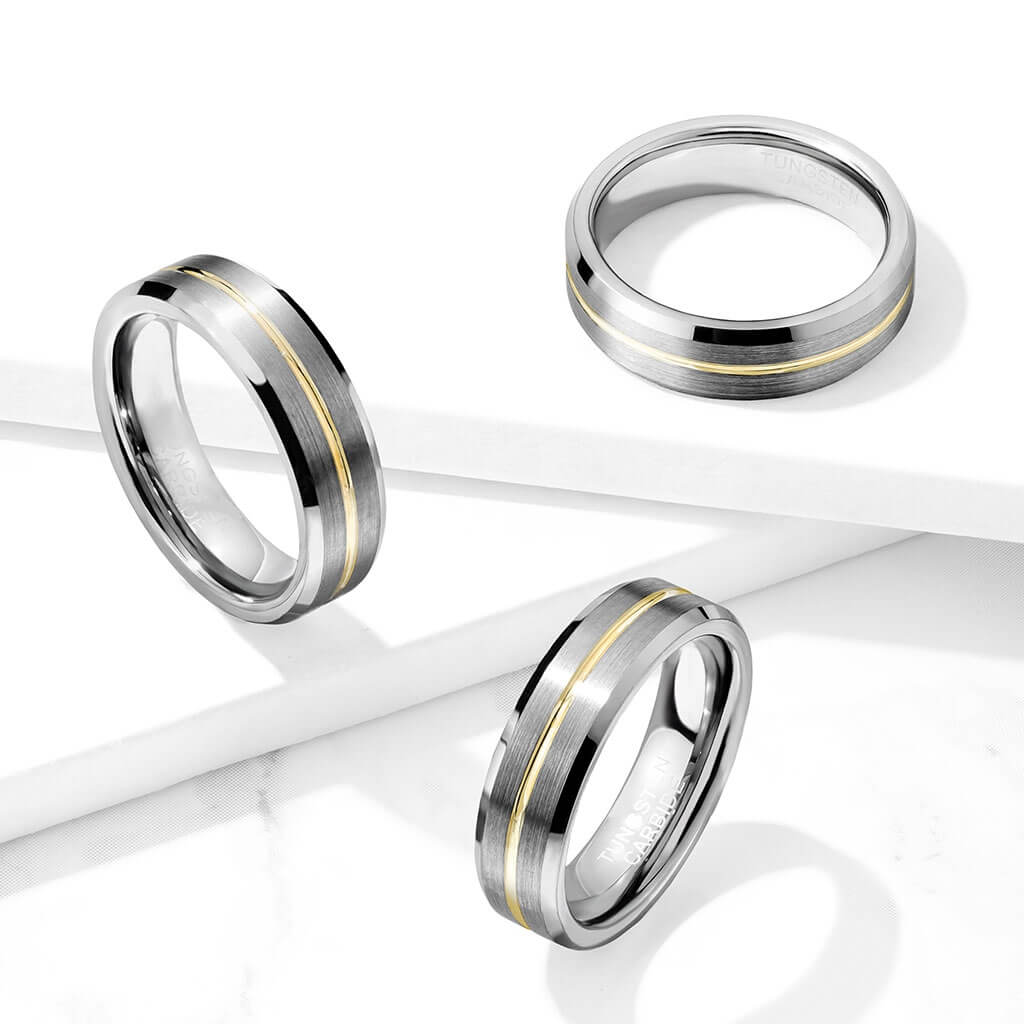Argento spazzolato con linea oro