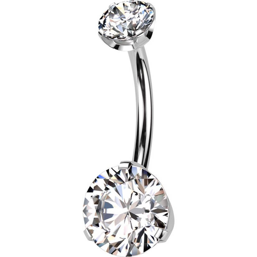 Titanio Piercing Ombelico 2 Zirconi Push-In