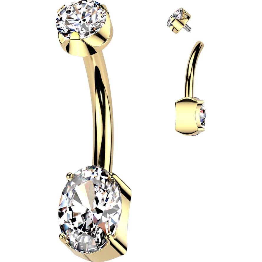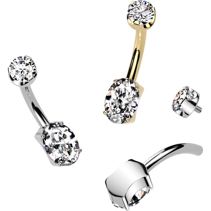 Titanium Belly Button Piercing 2 zirconia prong setting Internally Threaded