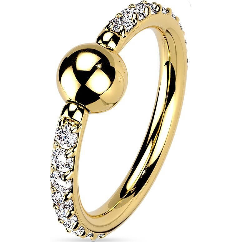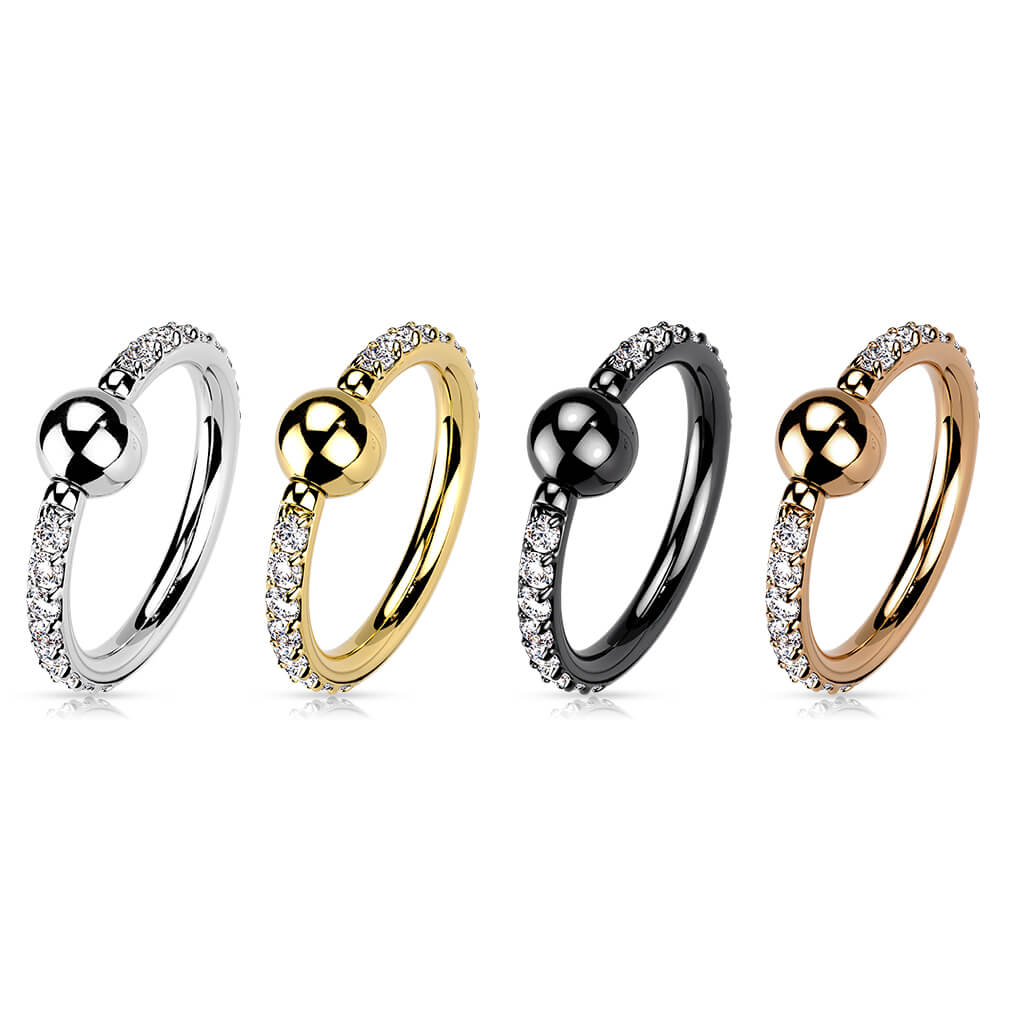 Titanio Anello Piercing Sfera con zircone Perla Prigioniera