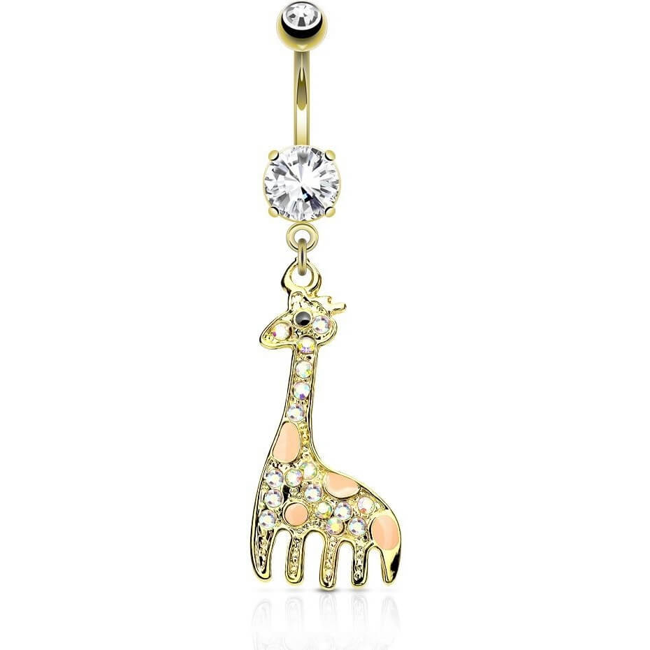 Kolczyk do pępka Żyrafa cyrkonia zawieszka pozłacany