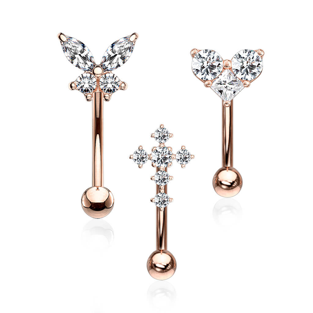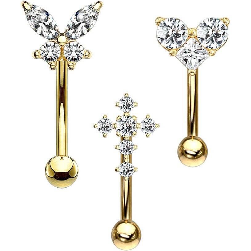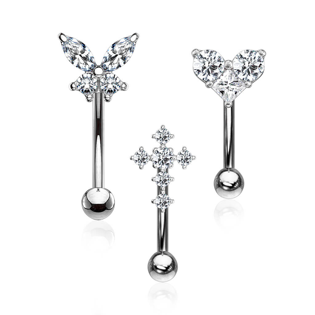 Kolczyk do brwi zestaw motyl serduszko krzyż cyrkonia