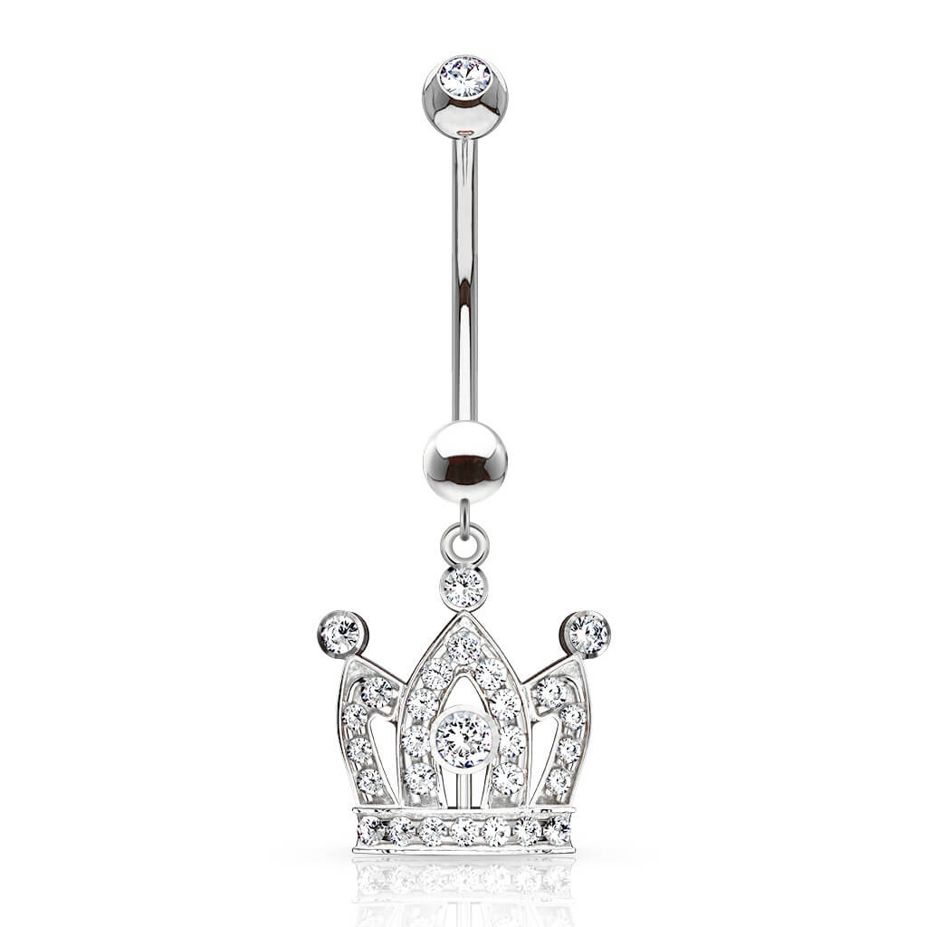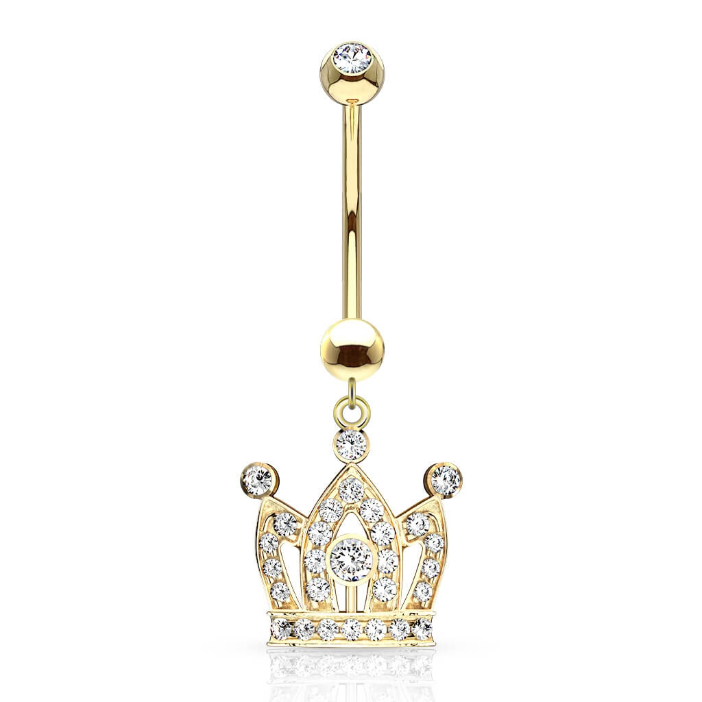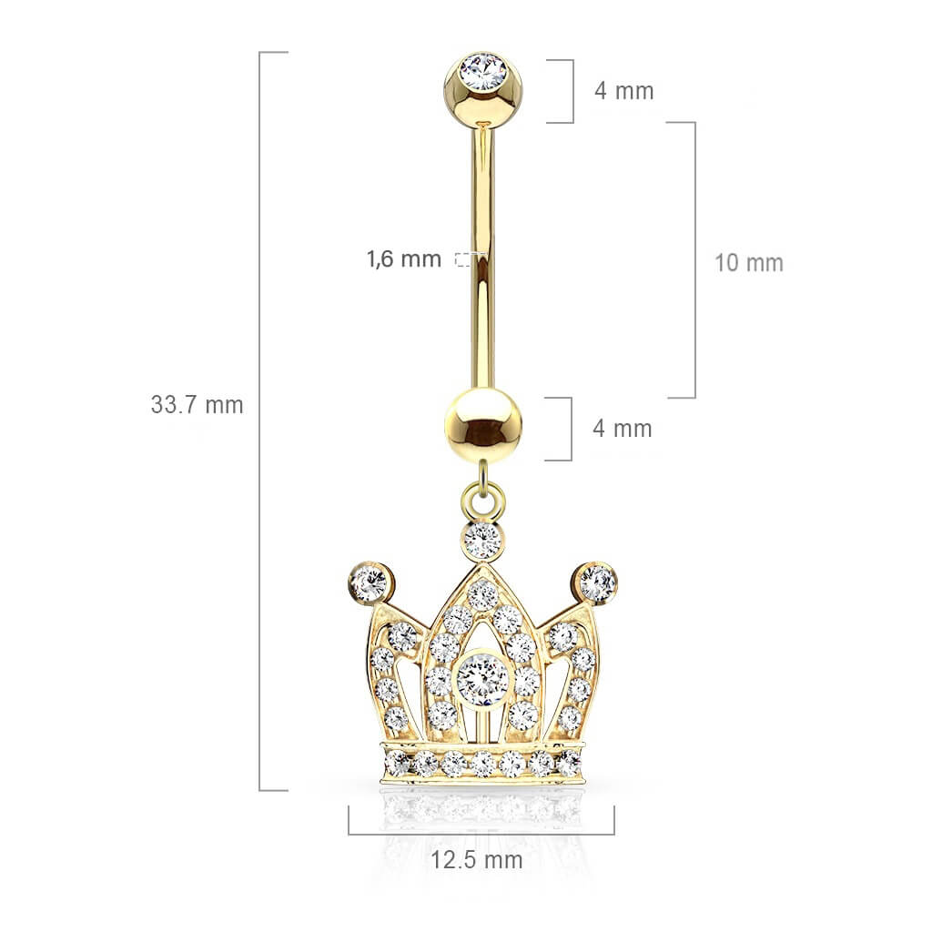 Złoto 585 kolczyk do pępka korona z cyrkoniami zawieszka