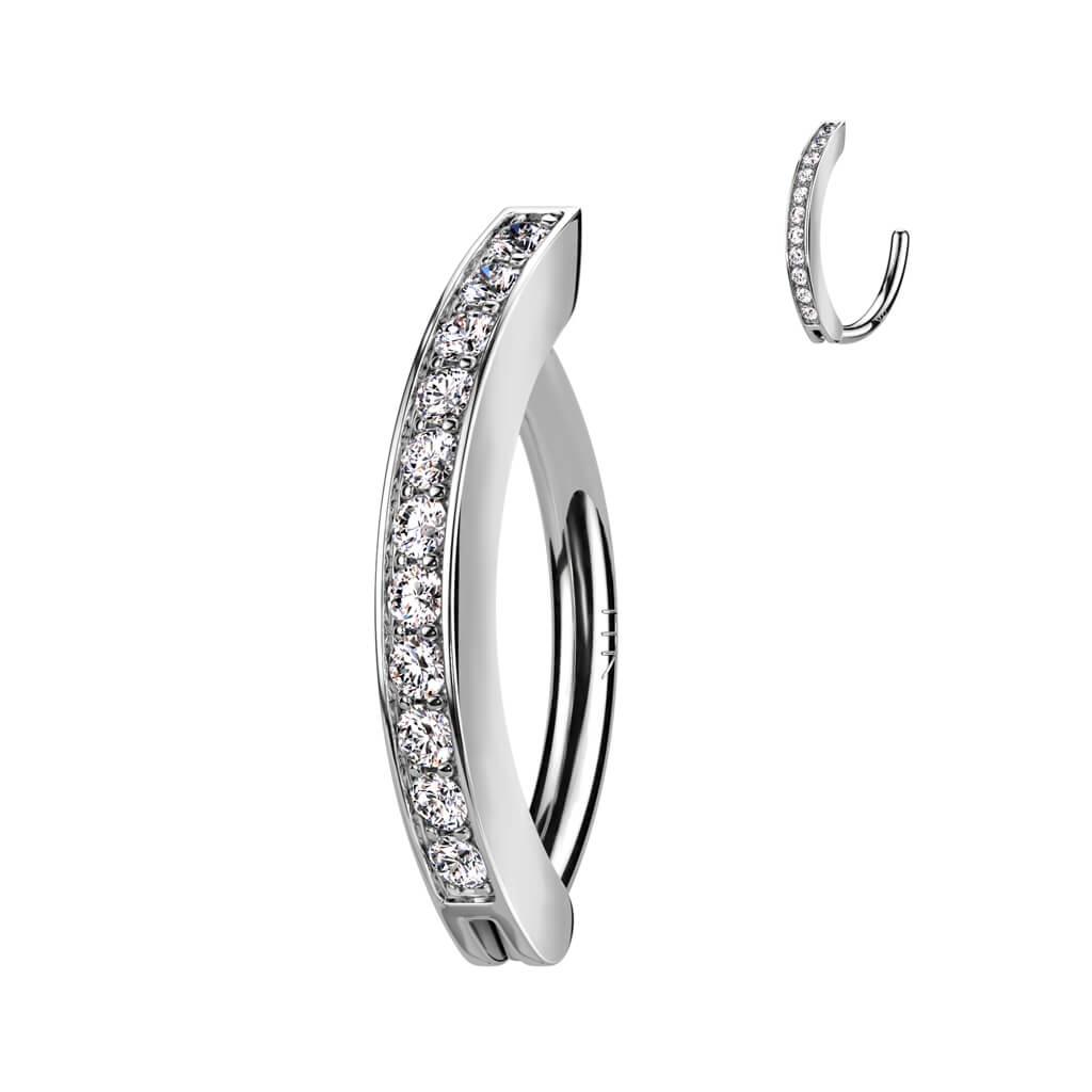 Złoto 585 kolczyk do pępka podłużny z cyrkoniami clicker