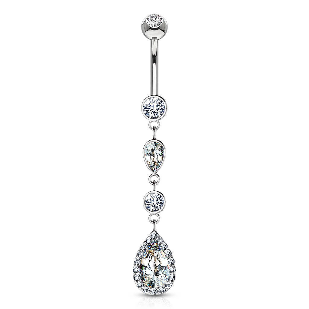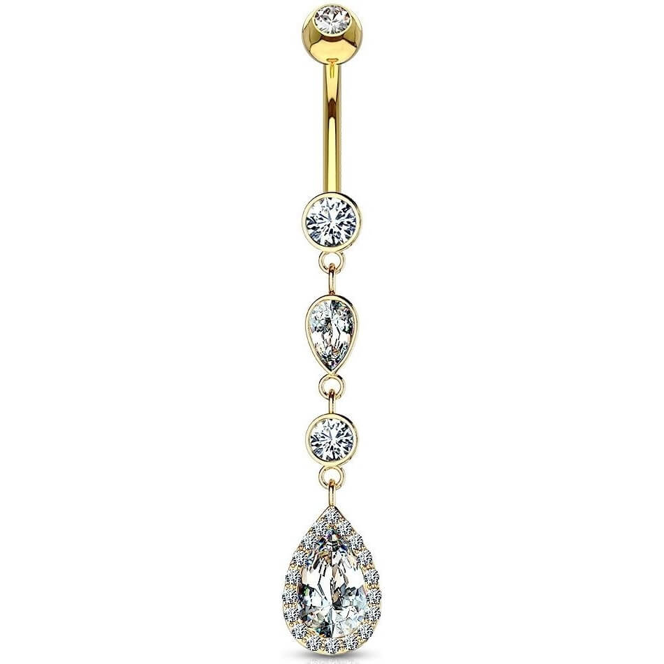 Złoto 585 kolczyk do pępka kropla cyrkonia zawieszka