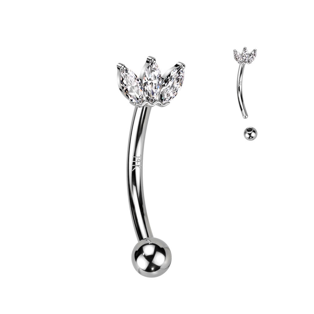 Złoto 585 kolczyk do brwi 3 cyrkonie