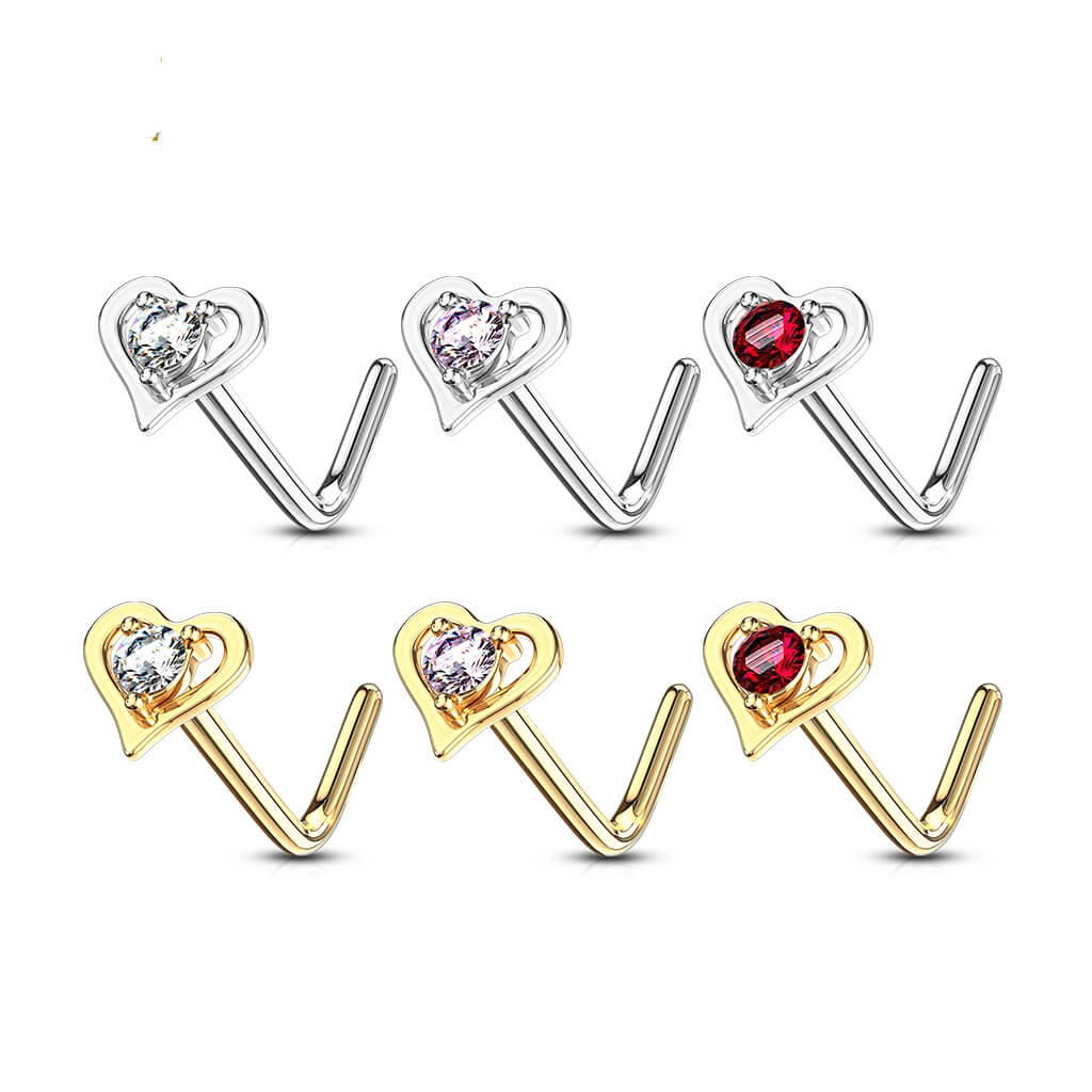 Złoto 585 kolczyk do nosa w kształcie litery l serduszko cyrkonia