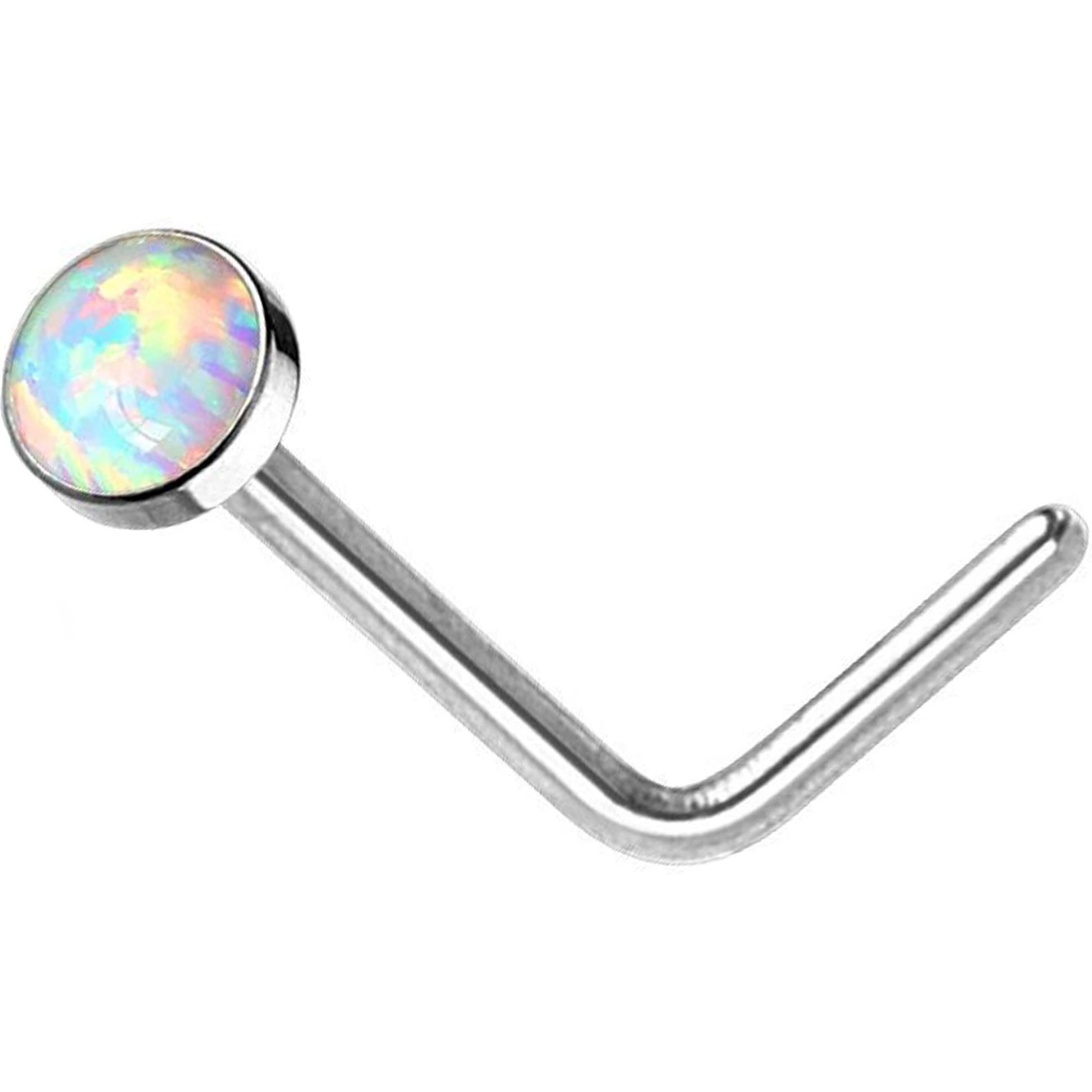 Kolczyk do nosa w kształcie litery l opal płaski srebrny
