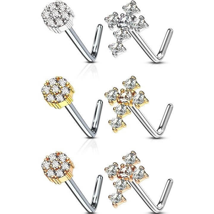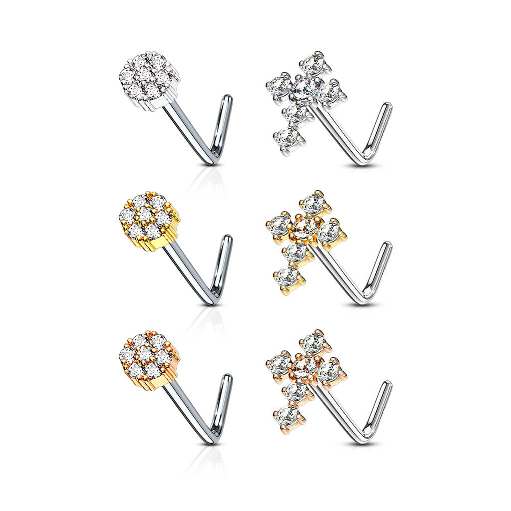 Kolczyk do nosa w kształcie litery l kwiatek krzyż cyrkonia