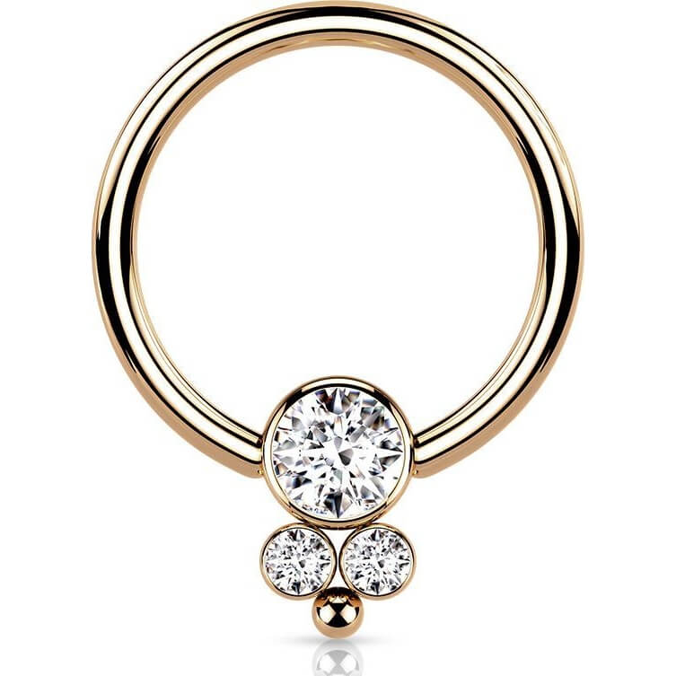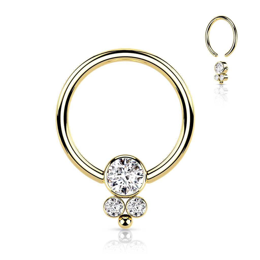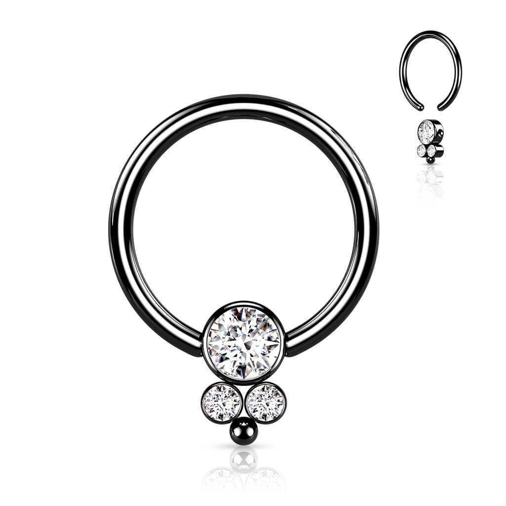 Kółko z płaską kulką 3 cyrkonie zapięcie captive bead