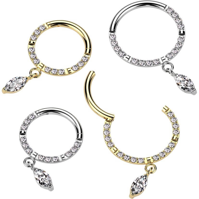 Tytan kółko zawieszka cyrkonia szlif markizowy kolczyk segmentowy