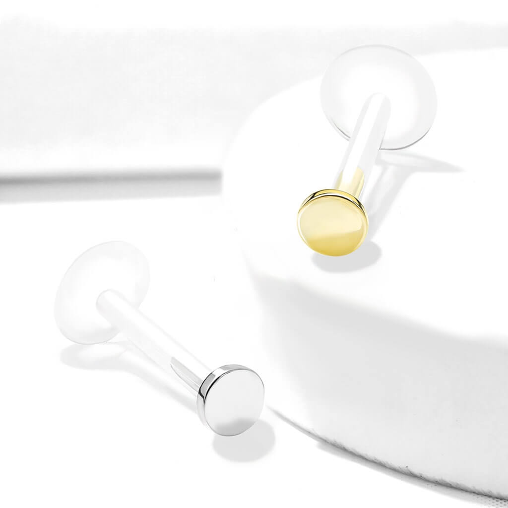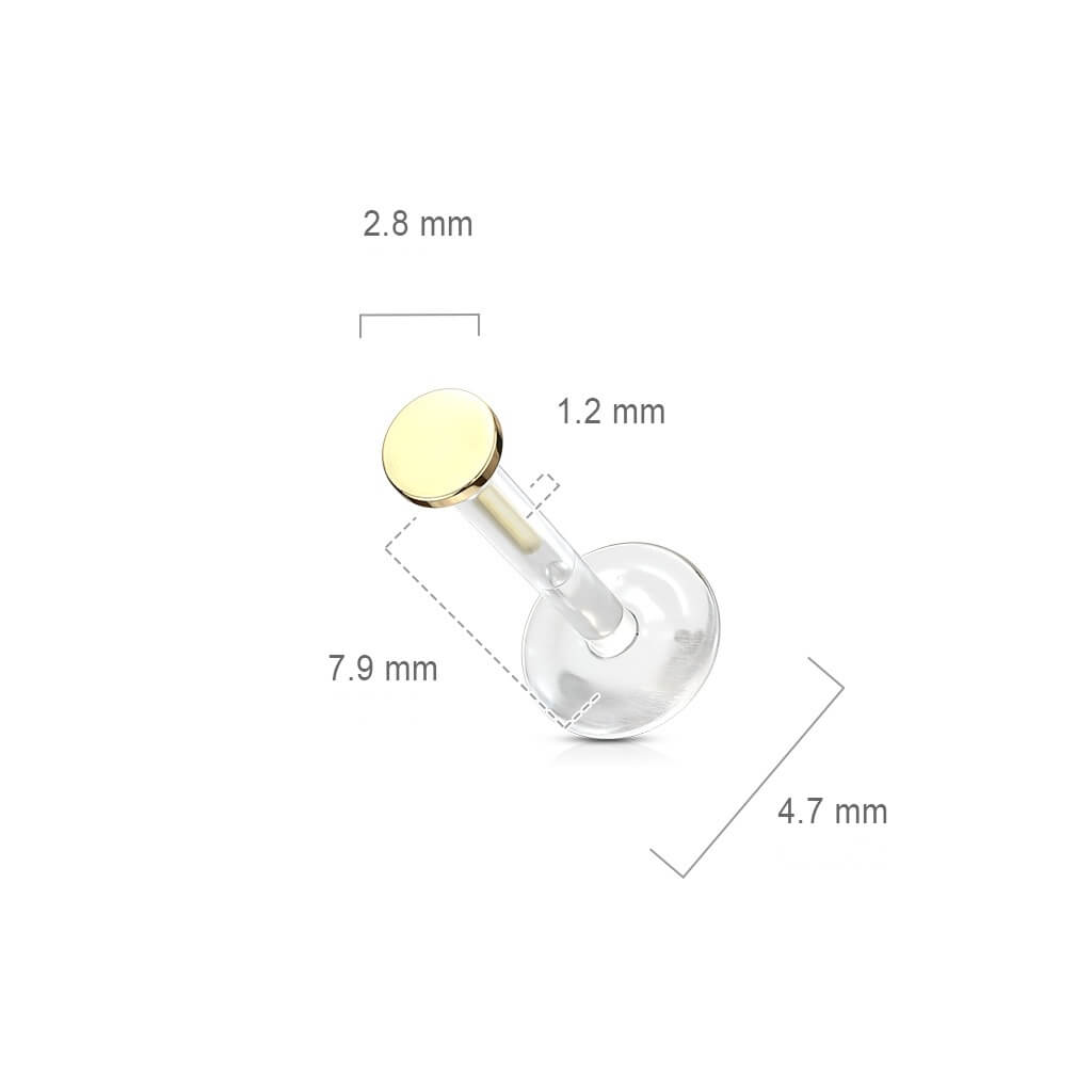 Solid Gold 14 Carat Labret Round Flat Push-In