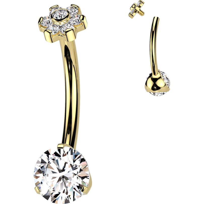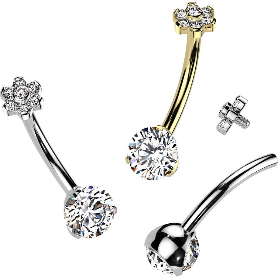 Titanium Belly Button Piercing flower zirconia Internally Threaded