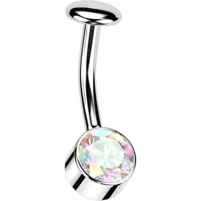 Titanium Belly Button Piercing Zirconia Frame Silver Push-In